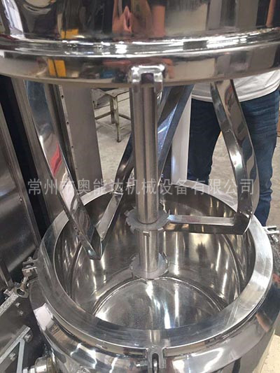 行星分散混合機有高速、低速、活動刮板作攪拌、剪切、刮壁、溶解用。低速運轉的攪拌錨使物料在密 閉容器內上下翻動、剪切和混合,高速運轉的齒形分散盤與混合的物料產生強烈的碰擊和剪切,隨著攪拌錨的旋轉,行星架上的活動刮刀隨著旋轉,把釜體上的物料完全刮掉,使聚集物完全、徹底地達到混合、分散、溶解的要求。在其高低速的不同作用下,使物料能夠達到均勻的混合和分散。